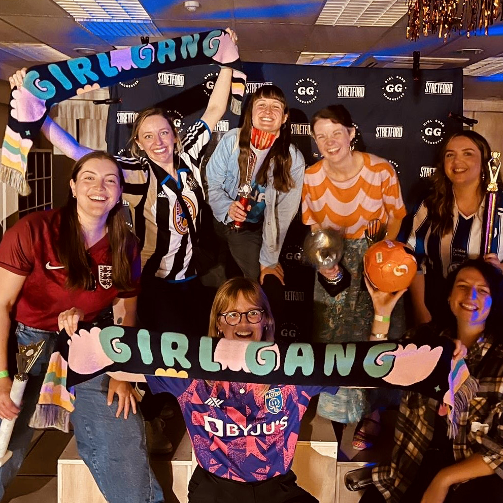 These (football) inspired scarves were made for our immersive screening Bend It Like Beckham and are reversible, super soft, high quality and British made, letting you show off your love for Girl Gang round ya neck.